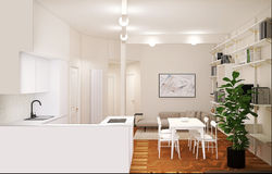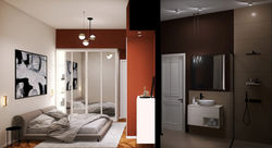 E' stata ripensata partendo dalle direttrici delle visuali, piazza Sire Raul e il viale alberato di via Teodosio, escludendo via Leoncavallo per proiettarsi nella retrostante visione della città. Ottimizzando le aree dei sevizi si è ottenuto un progetto in cui i volumi si compenetrano con un gusto squisitamente milanese: i ripostigli in quota diventano personaggi attivi della spazialità, le grandi superfici specchiate inganno l'occhio e i mobili si insinuano in tutti gli incavi lasciati dall'impiantistica ottimizzando le metrature. Nel piccolo openspace all'ingresso le linee della cucina, delle travi e dei pilastri in total white proiettano la vista sulla piazza e oltre. Nella camera un parallelepipedo nasconde la lavanderia accessibile dal bagno e trasformandola in un volume rifinito a specchio. Completano il progetto le finiture in oro satinato, il parquet integrato e recuperato in rovere e le tinte delle superfici e dei decori della Vogue ceramiche.